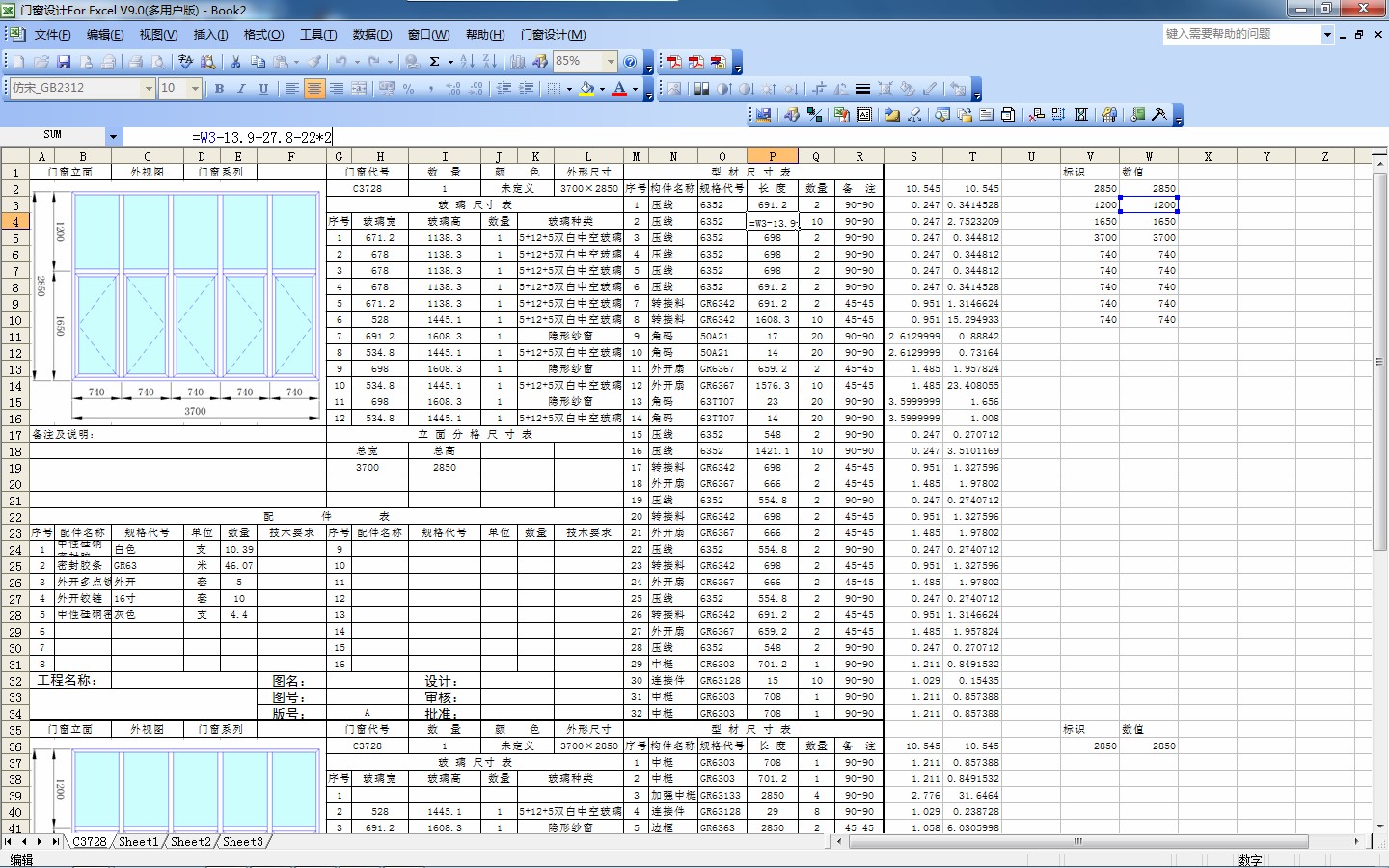 因为输出后完全依赖Excel的计算功能,因此下料单参数条件及钢化参数均会失效,因此请慎用此功能。